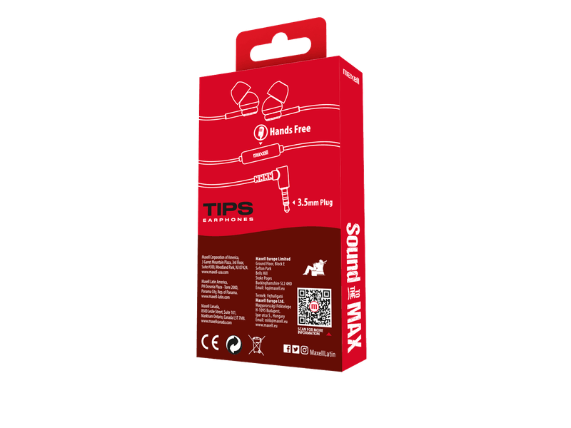 ElectrónicaAudioAudífonosAudífonos Maxell IN-TIPS con micrófono in ear estéreo rojo
