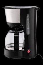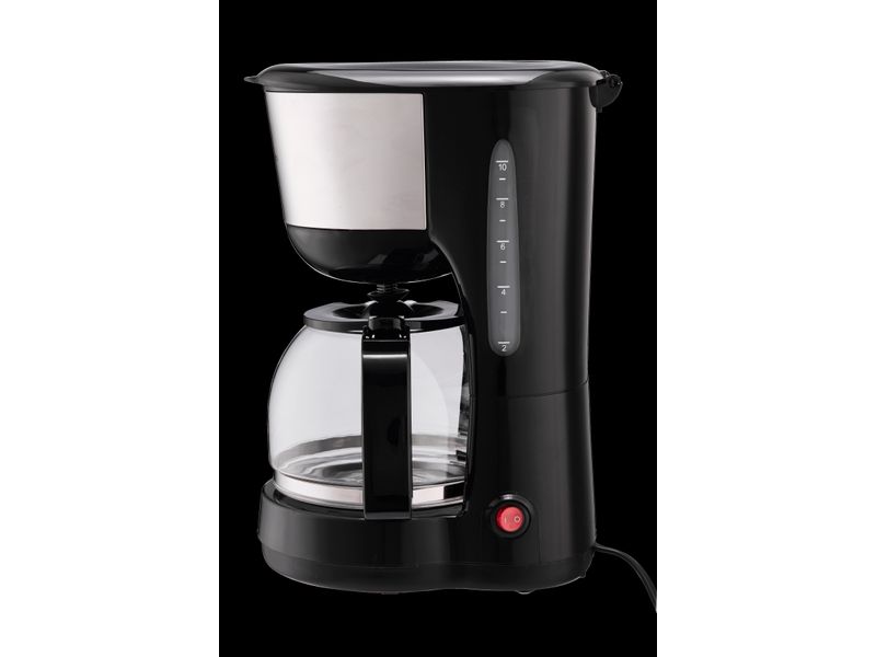 Cafetera negra para 10 tazas con jarra de vidrio, incluye cuchara para servir café, filtro permanente de nilón y botón de encendido y apagado.
