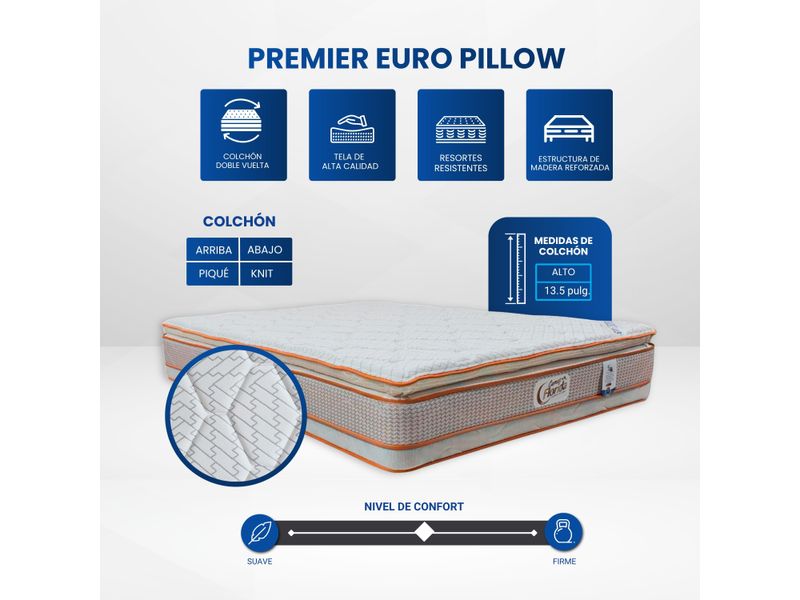 Altura del colchón 13.0 in medidas 2.0 x 2.0 mts nivel de confort suave - semi firme