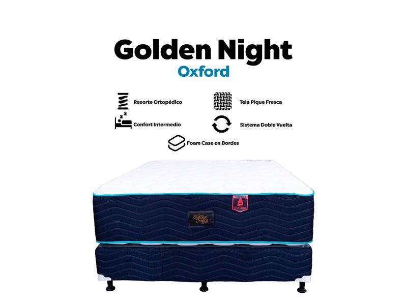 Eleva tu descanso con la Cama Golden Night modelo Oxford, una cama diseñada para ofrecer soporte, firmeza y frescura en cada noche. Su sistema ortopédico de alto desempeño brinda una alineación adecuada de la columna, ayudando a reducir la tensión corporal y promoviendo un descanso verdaderamente reparador.