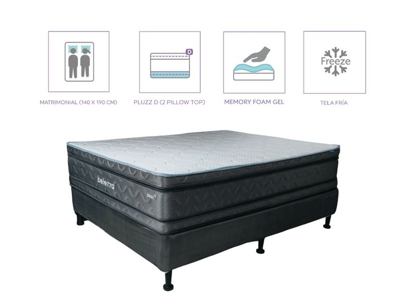 Este set incluye la base y el colchón, ambos pensados para maximizar la comodidad y el bienestar. La versión Pluzz D incorpora 2 Pillow Tops: