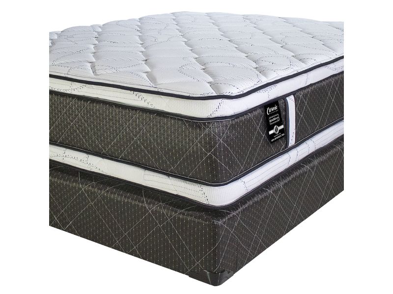 El colchón Cosmic Doble Euro Top ofrece un nivel de confort medio con soporte confiable y comodidad superior. Su estructura de resortes Transfer con boquilla pequeña brinda un 28% más de soporte, mientras las telas Piqué y Jackard con tratamiento antiácaros garantizan frescura e higiene. Gracias a su diseño de doble euro top y uso por ambos lados, proporciona mayor durabilidad y confort prolongado. Respaldo de 8 años de garantía que asegura calidad y confianza en tu descanso.