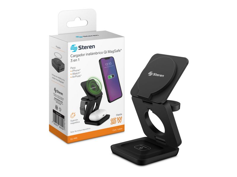 Cargador Steren inalámbrico MagSafe Qi 3 en 1 de hasta 15 W ELI-995