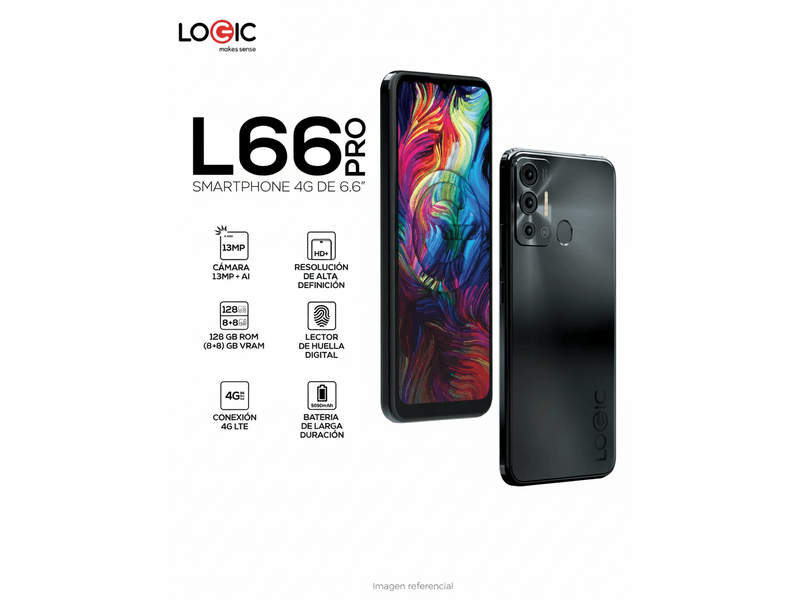 Smartphone de 6.6", Liberado, Dual SIM, RAM 16 GB (8GB Físicos + 8GB VRAM), Almacenamiento Interno de 128 GB, Procesador Octa-Core 1.6 Ghz, Batería de 5000 mAh, Android 13, Cámara de 13 MP con IA, Huella Digital y Reconocimiento Facial