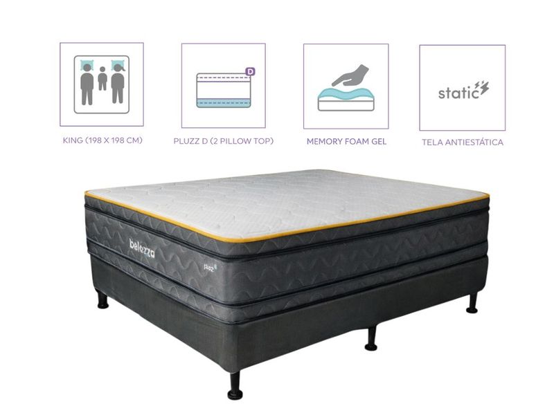 Colchón King Pluzz D by Belezza con tecnología Antistatic, diseñada para mejorar la calidad del descanso al reducir los niveles de estrés acumulado en el cuerpo. Su tela especial con fibras y filamentos metálicos canaliza las corrientes eléctricas fuera del organismo, ayudando a aumentar los niveles naturales de melatonina y promoviendo un sueño más profundo y reparador.