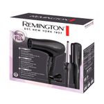 Secador con tecnología iónica y revestimiento de cerámica, que ofrece tres niveles de temperatura y dos velocidades, además de una ráfaga de aire frío. Cuenta con una potencia nominal de 1875 W. Alisadora con tecnología antiestática y el doble de turmalina, equipada con placas anchas de 5 cm y una temperatura máxima de 210 °C. Incluye pantalla digital para un mejor control. Rizador con barril de 1.3 cm a 2.5 cm recubierto de cerámica, temperatura máxima de 205 °C y 30 niveles de ajuste térmico.