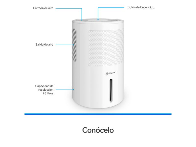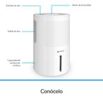 Capacidad: Incorpora un tanque de 1,8 litros que tiene un sensor para apagar el deshumidificador automáticamente cuando esté lleno.