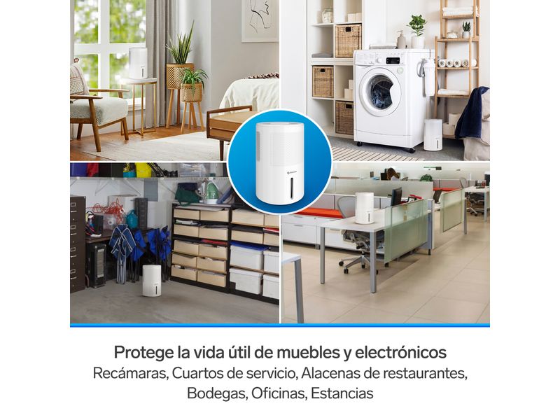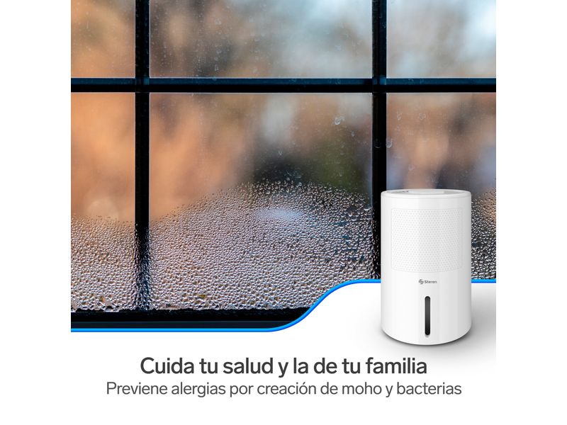 Evita que la humedad se propague y que aparezcan bacterias, moho y otros agentes de enfermedades y alergias, como tos, problemas respiratorios y congestión nasal. Además, protege y prolonga la vida útil de tus aparatos electrónicos y muebles.