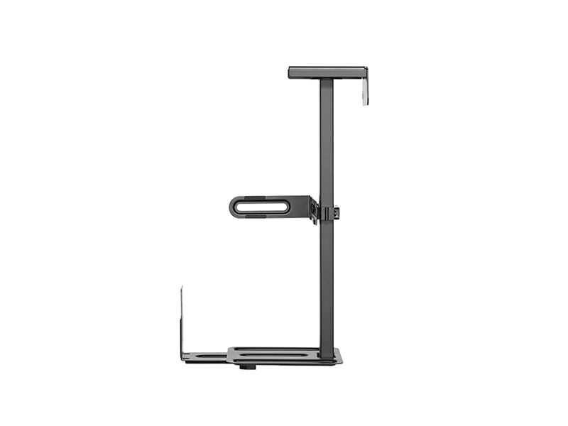 Soporte para CPU de fácil instalación. Permite ajustar libremente el ancho y el largo, con opciones de montaje debajo del escritorio o en la pared. Giratorio de 360 grados y ajuste de profundidad para mayor comodidad y organización.
