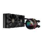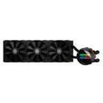 Compatible con sockets intel y amd variados, 3 ventiladores de 120mm, dimensiones 392 x 121 x 27mm, placa fría de cobre, radiador de aleación de aluminio, tubo de 400mm, velocidad de bomba 3200 rpm, velocidad de ventilador 600-2000 rpm, voltaje nominal 12vdc, consumo eléctrico bomba 4.2w, consumo eléctrico ventiladores 2.76w, conectores variados para bomba, luces y ventiladores.