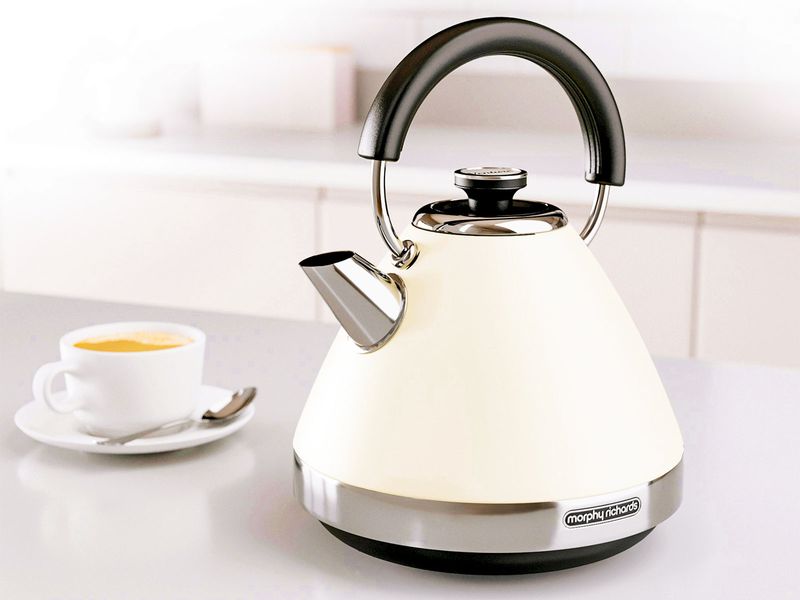 El hervidor eléctrico piramidal Morphy Richards color crema combina estilo retro con tecnología moderna para ofrecerte una experiencia elegante y práctica en tu cocina. Su capacidad de 1.5 litros es ideal para preparar té, café o infusiones para toda la familia.