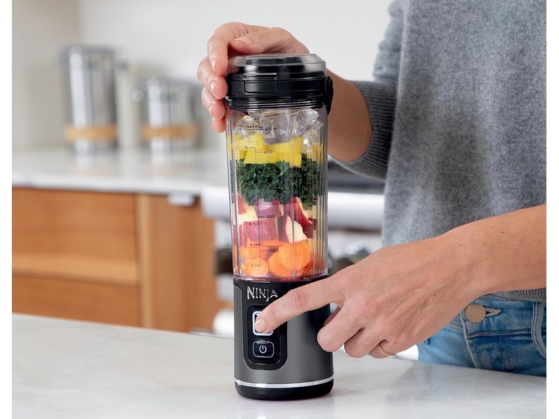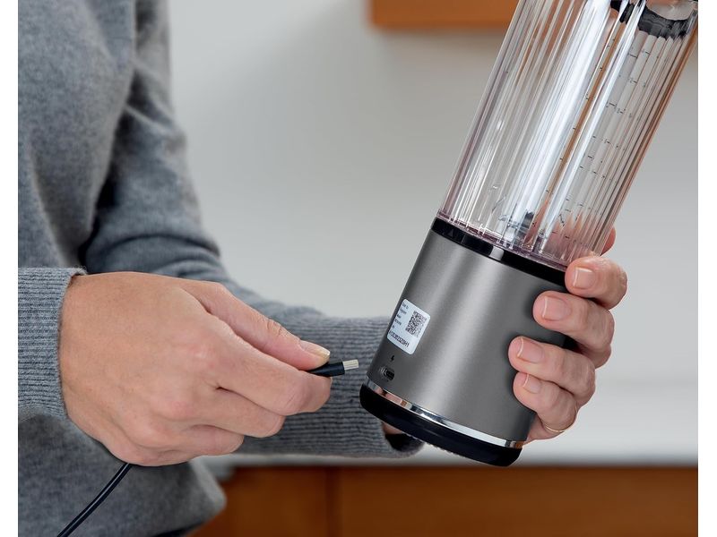 Es ideal para usar en el gimnasio, el parque, el coche o el trabajo, adaptándose a un estilo de vida activo. Cuenta con batería recargable mediante USB-C, ofreciendo una larga duración capaz de preparar más de 10 batidos por carga.