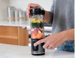 directamente en el vaso smoothies, batidos de proteínas y más, para batir y consumir cuando y donde tú quieras. Su diseño antiderrame la hace perfecta para llevar en la mochila o bolso sin preocupaciones.