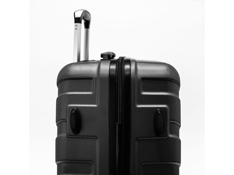 Maleta de viaje rígida de 20” con ruedas giratorias 360°, candado TSA y manija telescópica. Fabricada en ABS texturizado resistente a rayones. Tamaño aprobado como equipaje de mano, ideal para viajes cortos o de negocios. Interior organizado con compartimentos y correas.