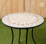 La Mesa para exterior con superficie de azulejo es una opción ideal para embellecer y optimizar tus espacios al aire libre. Su diseño combina una estructura resistente con un elegante acabado de azulejo en la parte superior, ofreciendo durabilidad y estilo. Perfecta para jardines, terrazas o patios, esta mesa proporciona una superficie funcional para reuniones, comidas o momentos de descanso al aire libre. Medidas: diámetro 60cm x alto 72cm.