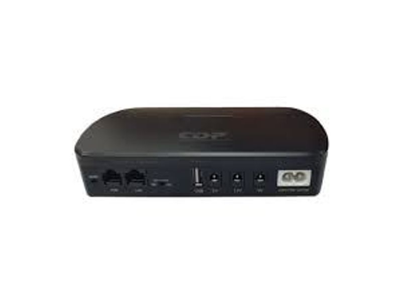 Mini UPS diseñado para respaldo de energía en equipos de bajo consumo DC. Integra batería de iones de litio 10 000 mAh, con salidas DC de 5V, 9V y 12V, además de puerto USB 5V. Potencia máxima de 18W. Proporciona conmutación automática ante fallos eléctricos, manteniendo la operación continua de routers, módems, cámaras IP y equipos de telecomunicaciones. Incluye protecciones contra sobrecarga, sobredescarga y cortocircuito. Diseño compacto y portátil.