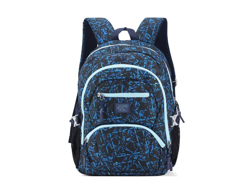 El compartimento principal es espacioso e incluye un bolsillo acolchado para laptop de hasta 16 pulgadas, con espacio suficiente para libros, cuadernos y otros útiles escolares. El bolsillo frontal permite organizar fácilmente objetos pequeños como el teléfono, llaves o cargador, mientras que el lateral es ideal para una botella de agua.