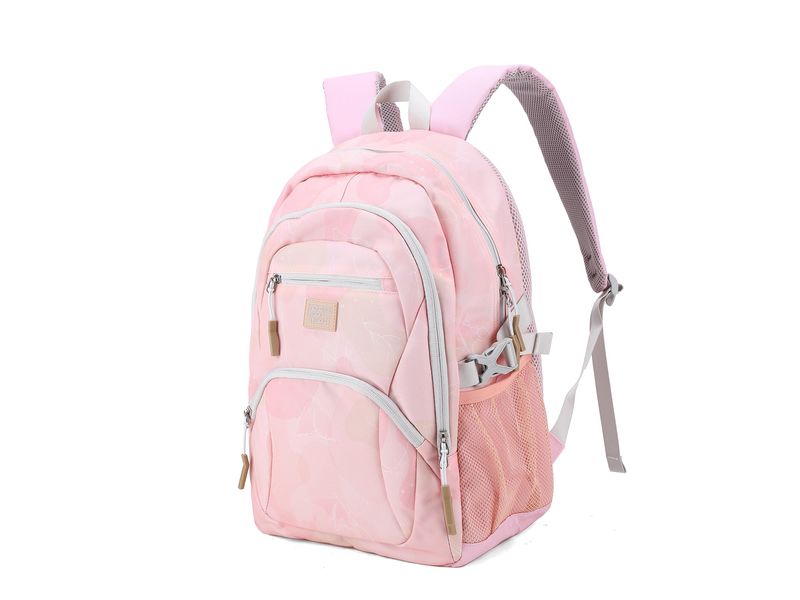 El compartimento principal es espacioso e incluye un bolsillo acolchado para laptop de hasta 16 pulgadas, con espacio suficiente para libros, cuadernos y otros útiles escolares. El bolsillo frontal permite organizar fácilmente objetos pequeños como el teléfono, llaves o cargador, mientras que el lateral es ideal para una botella de agua.