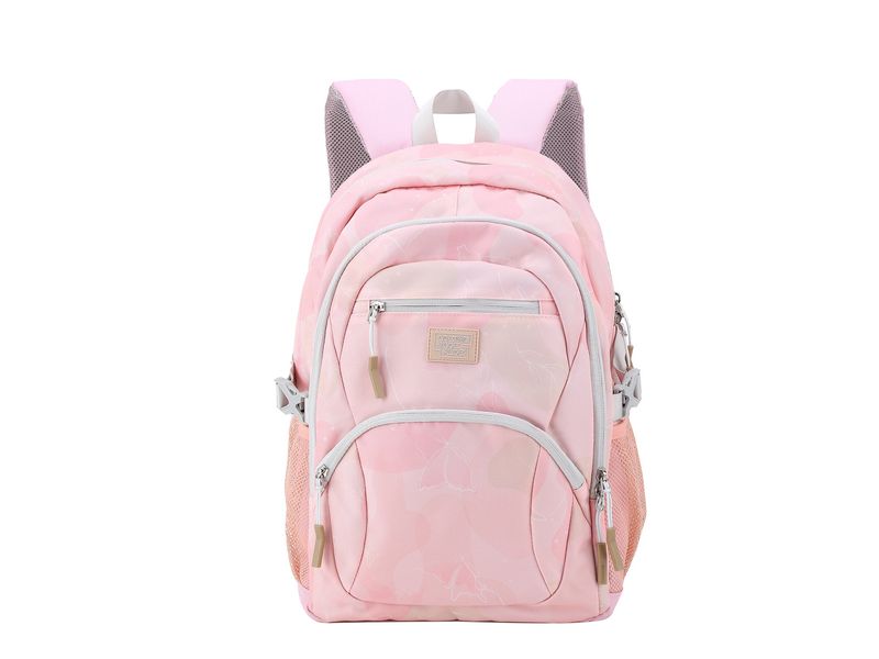 La parte posterior cuenta con un acolchado de malla de tres capas con canales de ventilación que favorecen la circulación del aire, manteniendo la espalda seca durante toda la jornada escolar.
