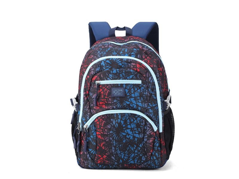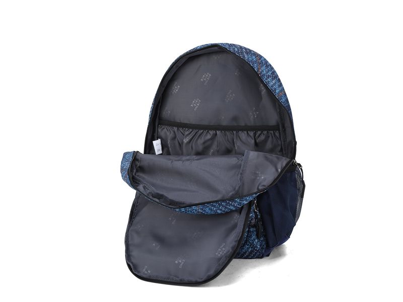 El compartimento principal es espacioso e incluye un bolsillo acolchado para laptop de hasta 16 pulgadas, con espacio suficiente para libros, cuadernos y otros útiles escolares. El bolsillo frontal permite organizar fácilmente objetos pequeños como el teléfono, llaves o cargador, mientras que el lateral es ideal para una botella de agua.