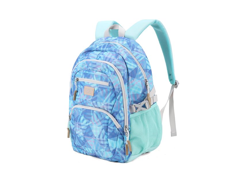 El compartimento principal es espacioso e incluye un bolsillo acolchado para laptop de hasta 16 pulgadas, con espacio suficiente para libros, cuadernos y otros útiles escolares. El bolsillo frontal permite organizar fácilmente objetos pequeños como el teléfono, llaves o cargador, mientras que el lateral es ideal para una botella de agua.