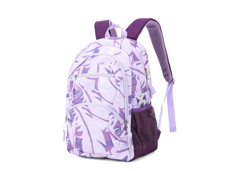El compartimento principal es espacioso e incluye un bolsillo acolchado para laptop de hasta 16 pulgadas, con espacio suficiente para libros, cuadernos y otros útiles escolares. El bolsillo frontal permite organizar fácilmente objetos pequeños como el teléfono, llaves o cargador, mientras que el lateral es ideal para una botella de agua.