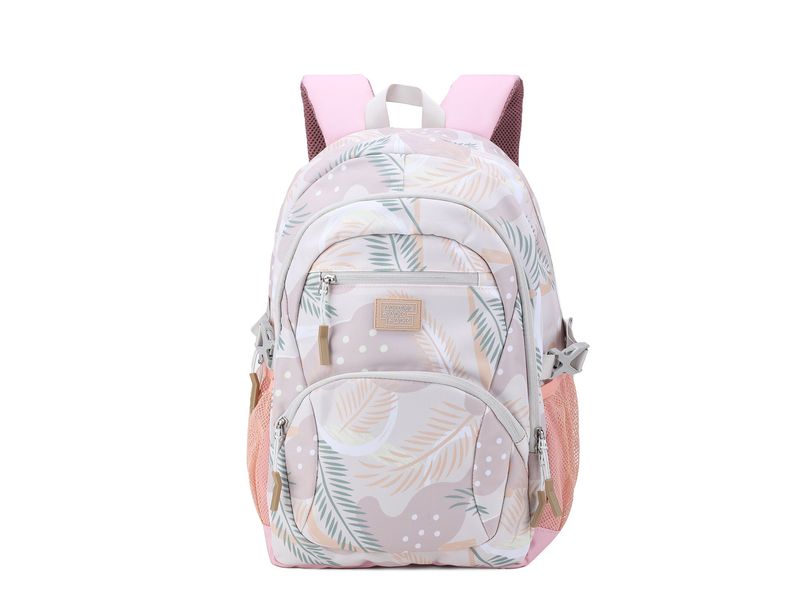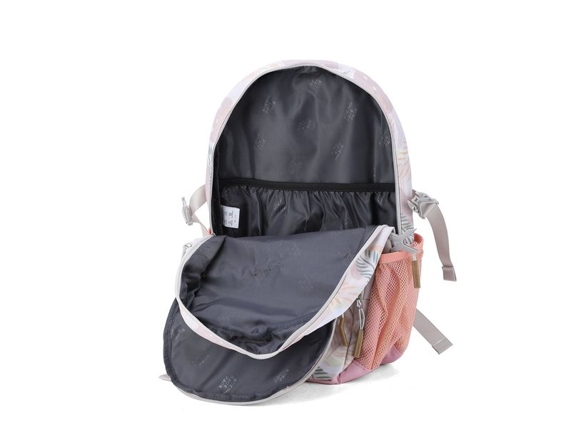 El compartimento principal es espacioso e incluye un bolsillo acolchado para laptop de hasta 16 pulgadas, con espacio suficiente para libros, cuadernos y otros útiles escolares. El bolsillo frontal permite organizar fácilmente objetos pequeños como el teléfono, llaves o cargador, mientras que el lateral es ideal para una botella de agua.