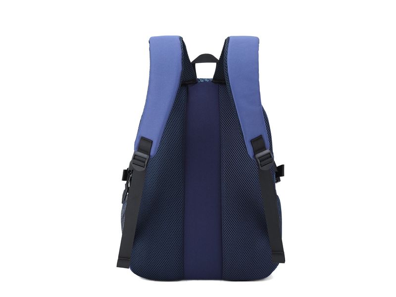 La parte posterior cuenta con un acolchado de malla de tres capas con canales de ventilación que favorecen la circulación del aire, manteniendo la espalda seca durante toda la jornada escolar.