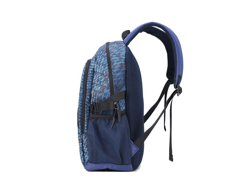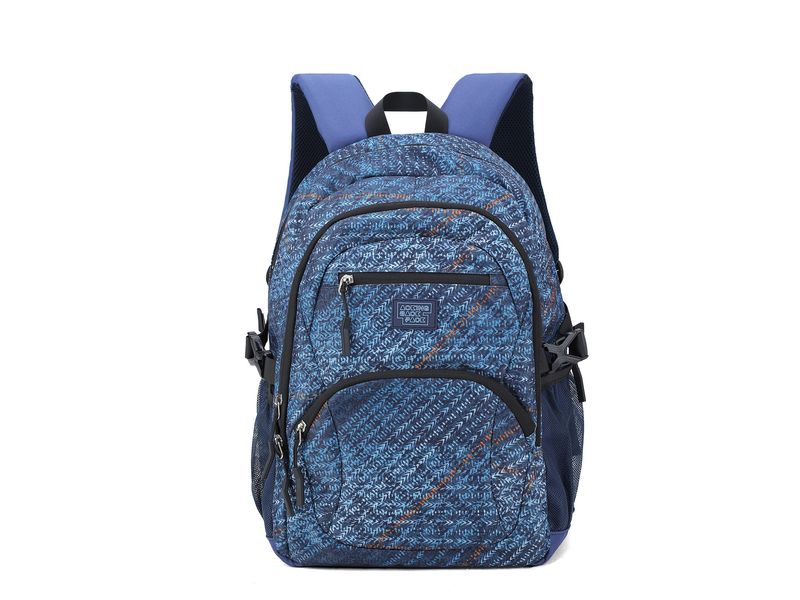 El compartimento principal es espacioso e incluye un bolsillo acolchado para laptop de hasta 16 pulgadas, con espacio suficiente para libros, cuadernos y otros útiles escolares. El bolsillo frontal permite organizar fácilmente objetos pequeños como el teléfono, llaves o cargador, mientras que el lateral es ideal para una botella de agua.