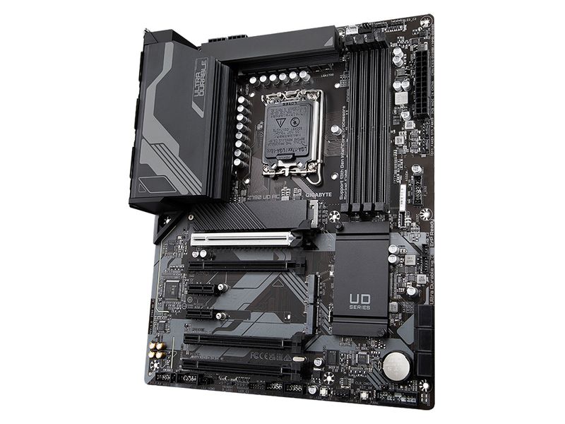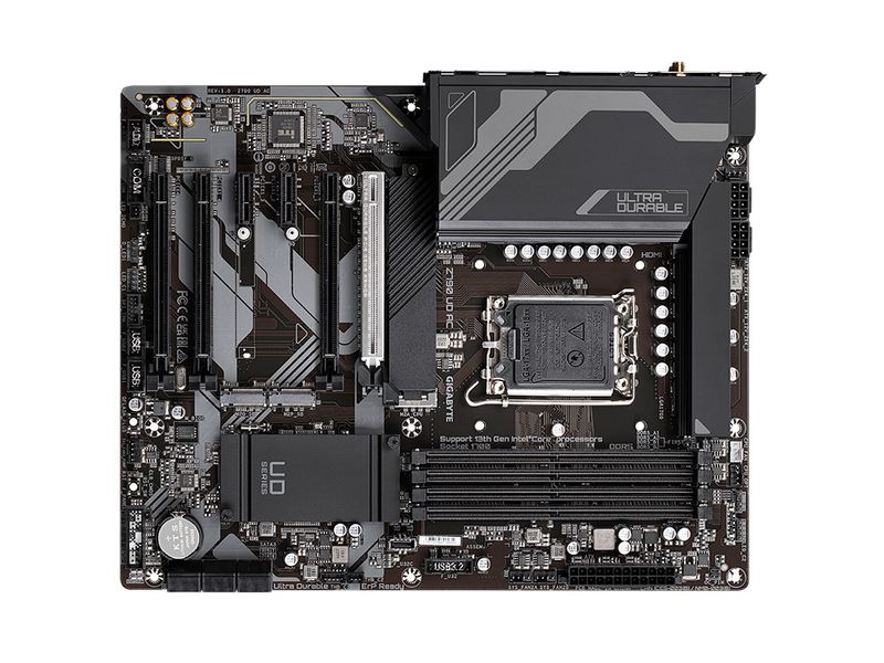 Soporta procesadores intel core de 12ª, 13ª y 14ª generación, pentium y celeron, CPU socket LGA1700, chipset intel Z790 express, 4 ranuras DDR5 DIMM con capacidad máxima de 192GB, soporta memoria RAM de 4800 MHz a 7600 MHz (OC), Wi-Fi 802.11 a/b/g/n/ac, bluetooth 4.2, 3 conectores M.2 PCIe 4.0 x4/x2, 6 conectores sata 6Gb/s, variedad de puertos USB, HDMI, displayport, RJ-45, conectores de audio, factor de forma micro-ATX, conector de alimentación de 24 pines y 8 pines
