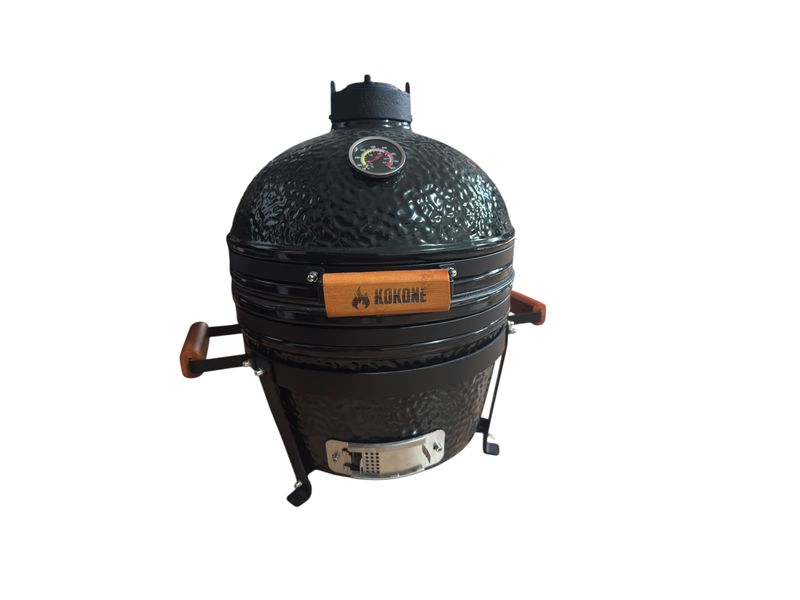 Parrilla estilo Kamado marca Kokone Grill de 16 pulgadas. Compacto, ideal para patios pequeños o terrazas. Ahuma, asa, rostiza y hornea. Perfecto para 4-6 personas.