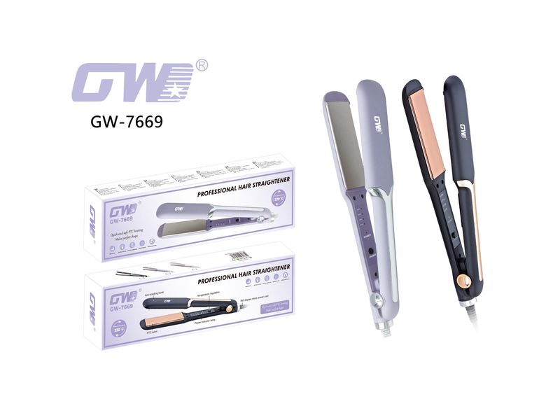 La plancha para cabello GW-7669 combina precisión y tecnología avanzada para proporcionar un alisado uniforme, protegiendo la salud del cabello y garantizando resultados duradero