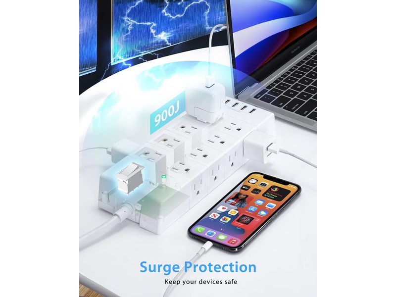 • Diseño de 3 lados: Permite conectar enchufes sin bloquear otros, diseño compacto y ahorrador de espacio