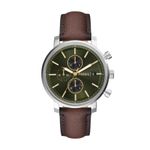 Reloj Fossil para Hombre con Carátula Verde y Correa de Piel Marrón Reloj Fossil de estilo clásico y moderno, con caja plateada de acero inoxidable y carátula verde. Su correa de piel marrón y movimiento de cuarzo garantizan comodidad, precisión y un toque elegante para cualquier ocasión.