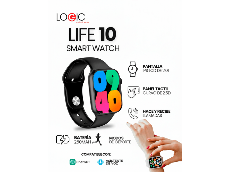 Con su pantalla curva de 2 pulgadas, conectividad Bluetooth y funciones inteligentes, el Logic Life 10 te permite mantenerte conectado, controlar tu entorno y expresar tu estilo sin depender de tu teléfono.
