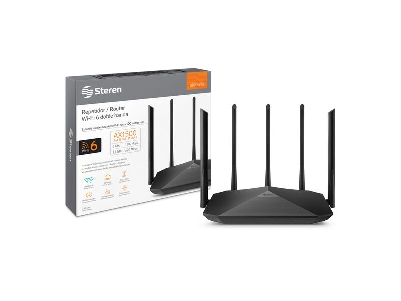 Repetidor Steren Router Wi-Fi 6 AX1500 2,4 GHz y 5 GHz hasta 100 m de cobertura COM-870+