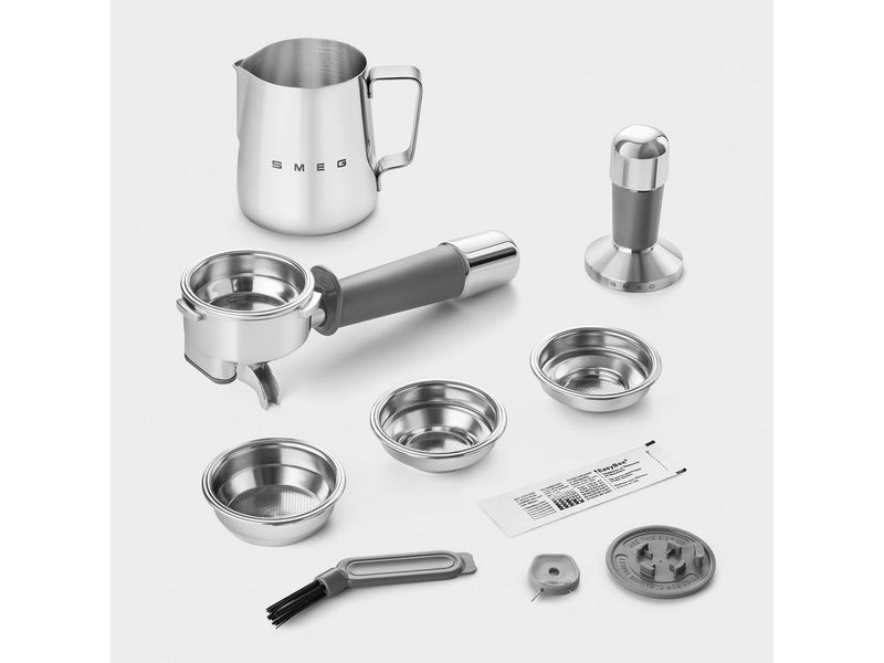Combinando la estética de mediados de siglo con las comodidades modernas, esta elegante máquina ofrece un auténtico espresso con el icónico estilo italiano. Cuenta con un molinillo cónico con muelas de acero inoxidable y boquilla doble que permite preparar y moler una o dos tazas de café. También está equipada con una lanza de vapor instantáneo para preparar capuchinos cremosos. La máquina es fabricada por SMEG, una empresa italiana conocida por sus electrodomésticos de inspiración retro, creados en colaboración con algunos de los arquitectos más prestigiosos del mundo.