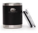 Vaso de acero inoxidable, con capacidad de 10 onz, color black. Es para uso en cualquier ambiente, tapa anti derrame. Sostiene el frió por 20 horas y bebidas calientes por más de 4 horas