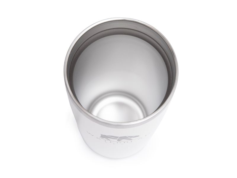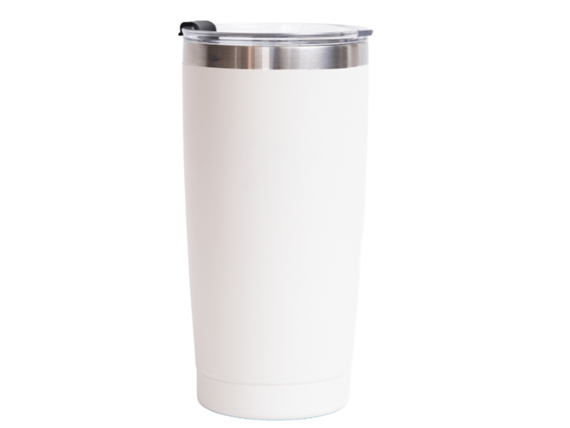 Vaso térmico de acero inoxidables con tapa deslizante anti derrame, color blanco. Idóneo para cualquier ambiente, frío o calor. Sostiene agua fría por mas de 24 horas y líquidos calientes por 6 horas.