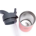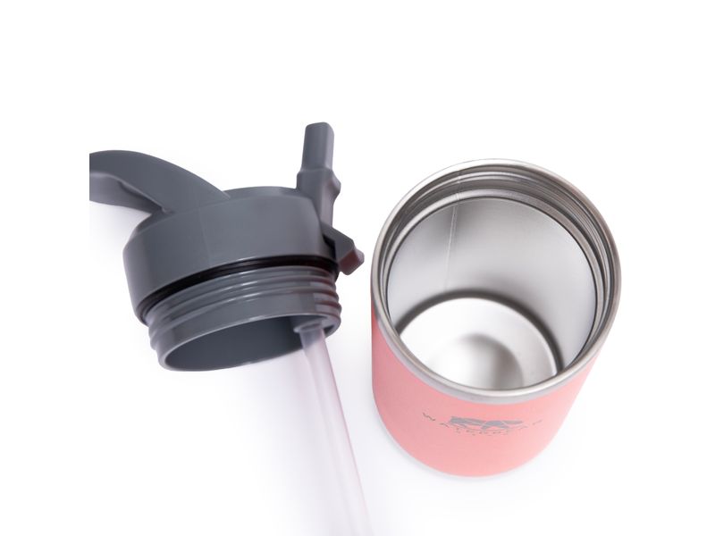 Termo de acero inoxidables con tapa de pajilla, sello hermético anti derrame, color Coral. Idóneo para cualquier ambiente, frio o calor. Sostiene agua fría por mas de 24 horas y líquidos calientes por 12 horas.