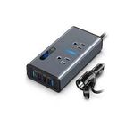 Inversor Automotriz 2OOW, 2 salidas nema 5-15R I2OVAC. 1 TYPE C PD Output (5Vdc @-12Vdc), 1 QC3.0 (5Vdc-12Vdc), 2 USB 3.4A. Tipo de fuente de alimentación: Interior, Potencia de salida: 200 W, Voltaje de salida: 120 AC, 5-12 DC. Color del producto: Negro, Gris. Ancho: 76 mm, Profundidad: 150 mm, Altura: 35 mm. Peso del paquete: 301 g. Cantidad por paquete: 2 pieza(s)