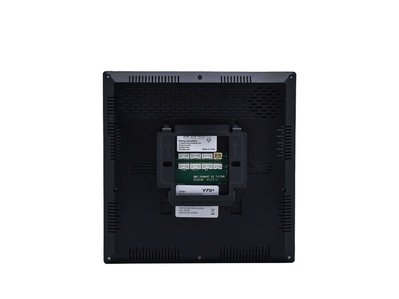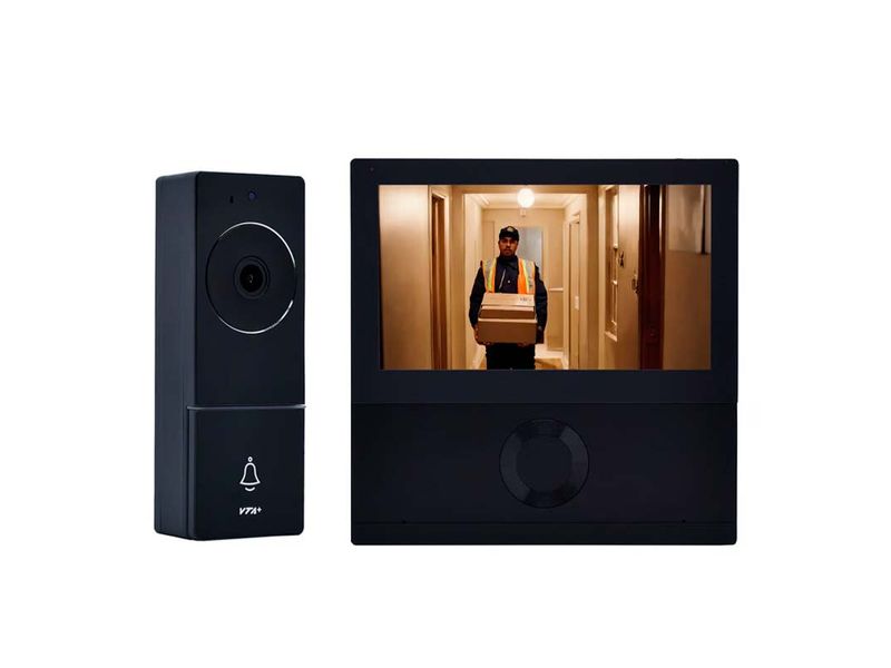 Pantalla táctil TFT 7", resolución pantalla FHD 1024x600p, detección de movimiento, sirena de alerta, función DVR, 6 tonos de melodías, micrófono y altavoz incorporado, ángulo de visión 120°, frecuencia Wi-Fi 2.4GHz (no compatible con 5GHz), grabación de video por micro SD hasta 128GB (no incluida). VTA-84790