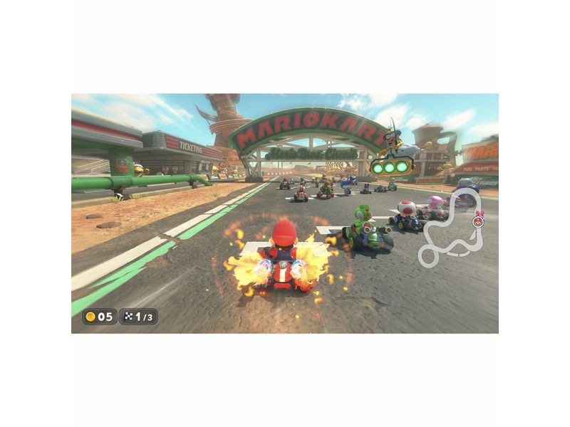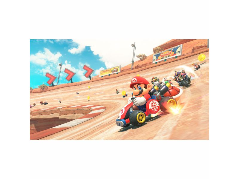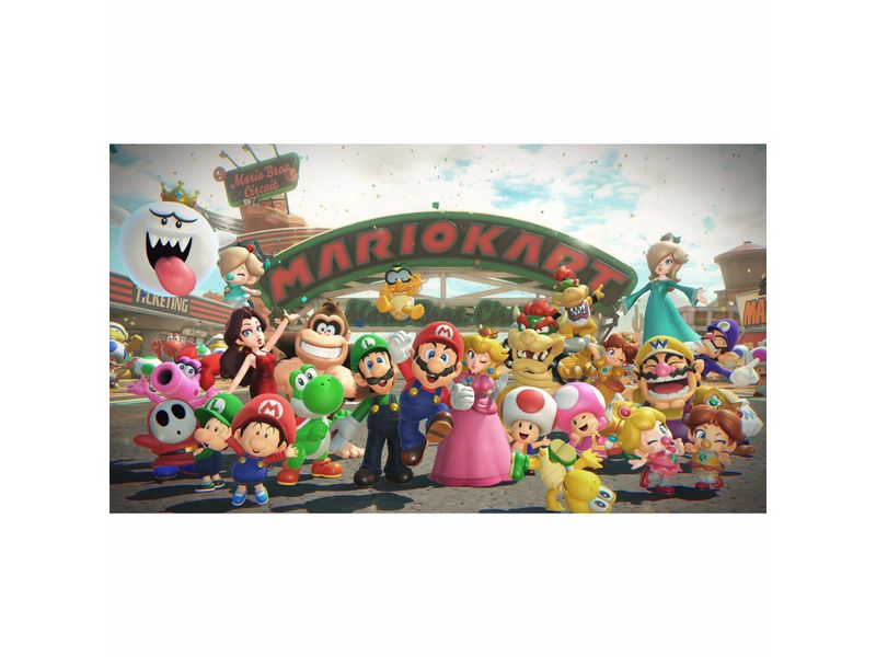 ¡Embárcate en esta nueva entrega de la Saga Mario Kart que te lleva a dar un tour por un mundo interconectado entre todas las pistas! Cada personaje incluye diferentes atuendos desbloqueables así como diferentes karts que podrás usar en los diferentes modos disponibles.