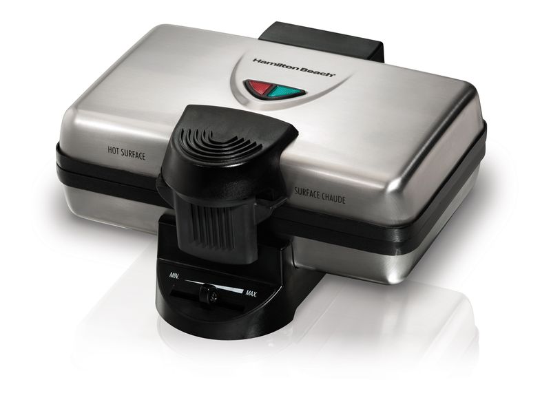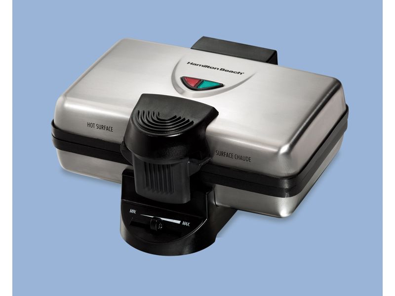 La Hamilton Beach HB26009 Belgian-Style Waffle Maker transforma tu cocina en la mejor cafetería con estilo casero. Gracias a sus rejillas antiadherentes de división dual, puedes preparar 2 waffles belgas perfectamente dorados en cada uso.