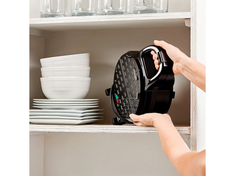 Crea deliciosos Waffles rellenos de 5cm de grosor. Haz tu receta dulce o salada, ¡como la prefieras! con tus ingredientes y rellenos favoritos. Su recubrimiento antiadherente, permite una fácil limpieza. Cuenta con luz indicadora de precalentamiento, 1000 vatios de potencia* y gira 180° para una cocción uniforme. Su diseño con canal de desborde previene derrames al cocinar. Permite fácil almacenamiento vertical